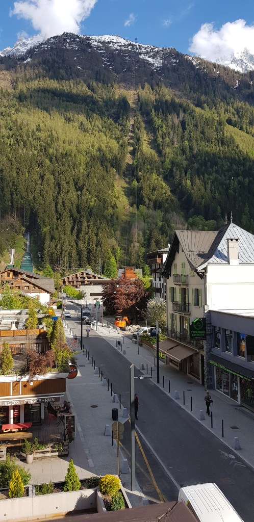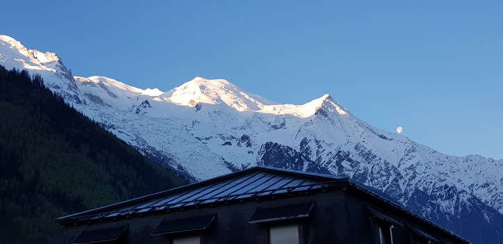 Another view from our hotel room early in the morning looking up at Mont Blanc – you can’t see the actual peak, it’s behind the pointy top bit but the moon popped into view which was amazing!