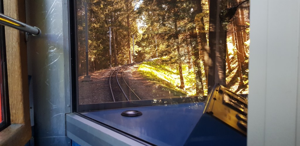 The view from our hotel looking up the mountain along the cable car route to the top. We had two balconies off our corner room and spent a lot of time staring at the mountains. We were mezmerised by the views.