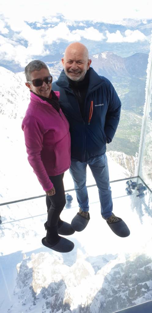 The Aiguille du Midi is the peak on Mont Blanc at 3842m. It’s the closest you can get to the summit of Mont-Blanc without hiking or climbing and we weren’t going to do that, not this time, not ever at our age.
