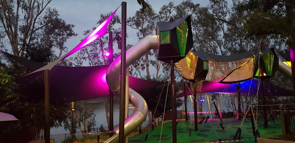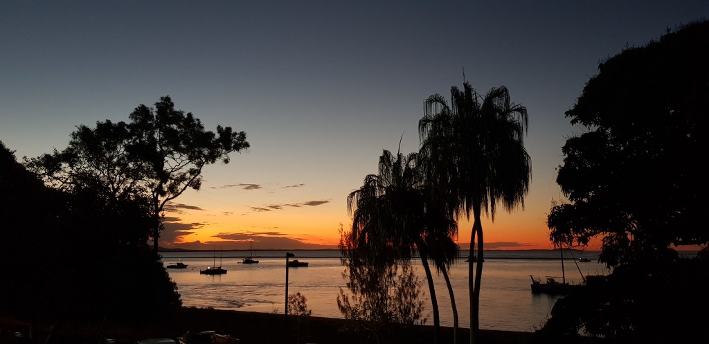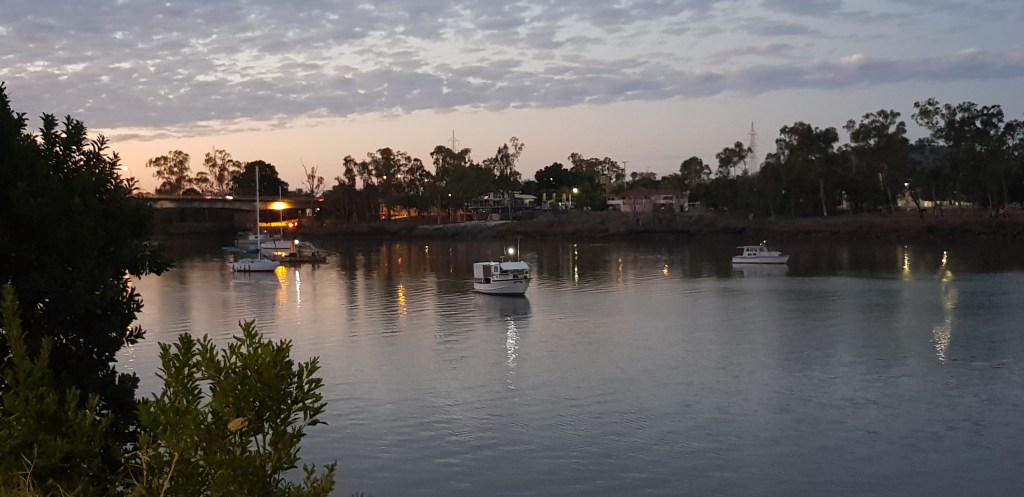 After dinner at a local pub, we wandered along the riverfront esplanade as the light faded. The gardens stretched gently along the river’s edge, with wide paths, palms, and pockets of green that invite an evening stroll. It was warm but comfortable, the river moving quietly beside us, and the whole place felt relaxed and unpretentious. A soft landing after a day of travel, and the perfect way to ease into the slower rhythm of our journey before heading north to 1770.