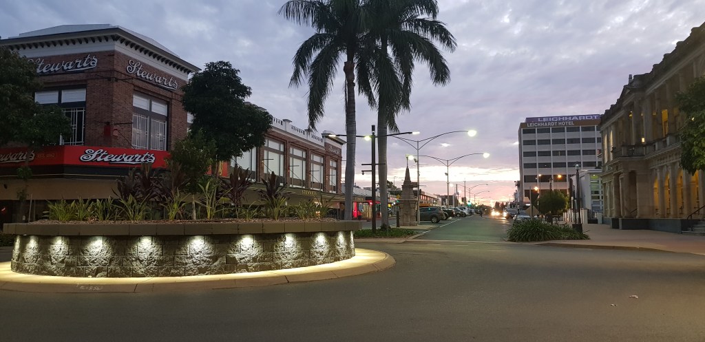 We flew into Rockhampton late in the day, picked up a car and decided to make a night of it before heading south. Rockhampton surprised us in the best way. Set along the Fitzroy River, the city has a calm, lived-in feel, and the heritage buildings lining the river are full of colour (lit up beautifully at dusk with clever lighting) and character.