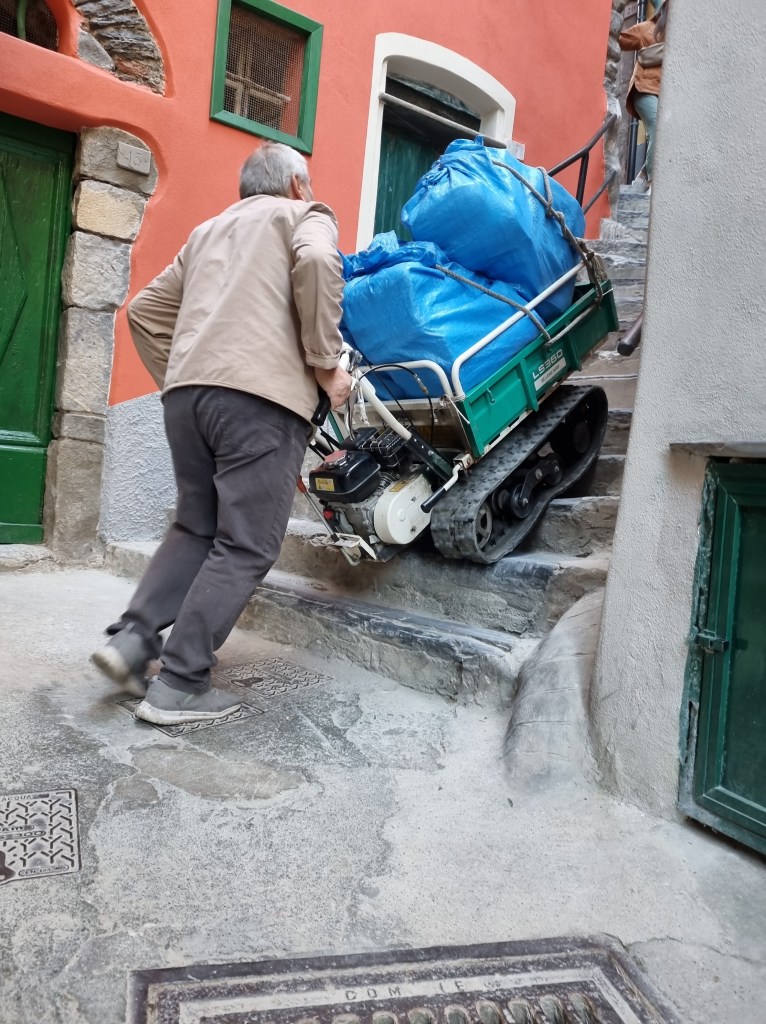 Jeff was fascinated by this vehicle used to get supplies to shops and restaurants around the town. This guy was up and down steps and around the town nearly all day making his deliveries.