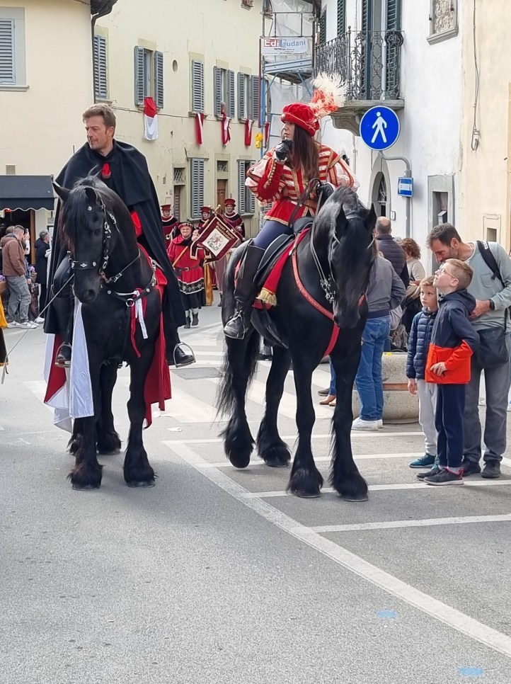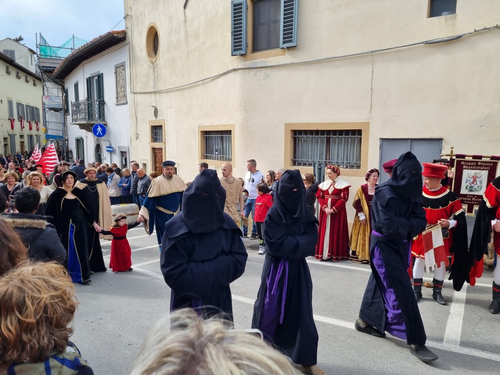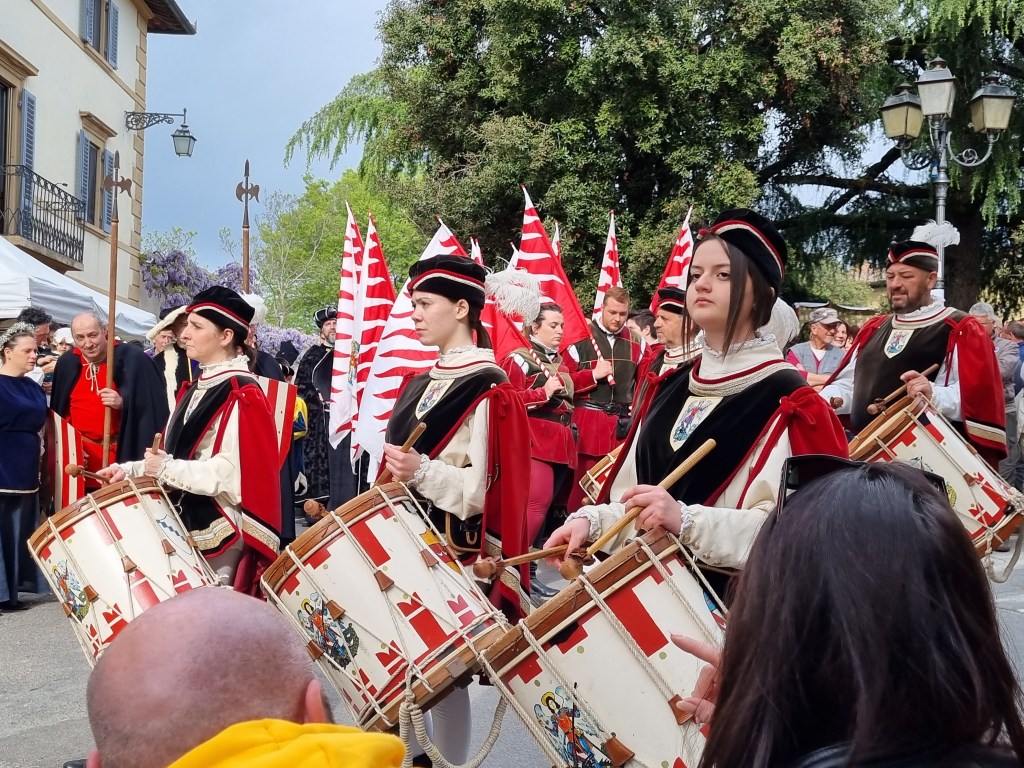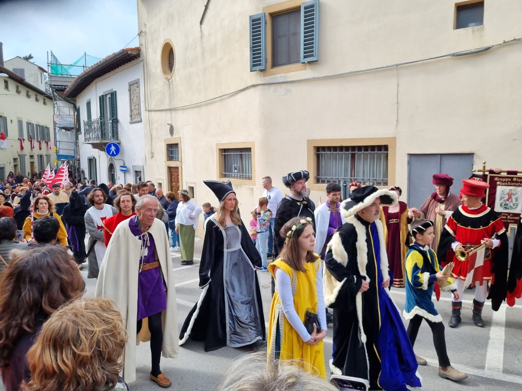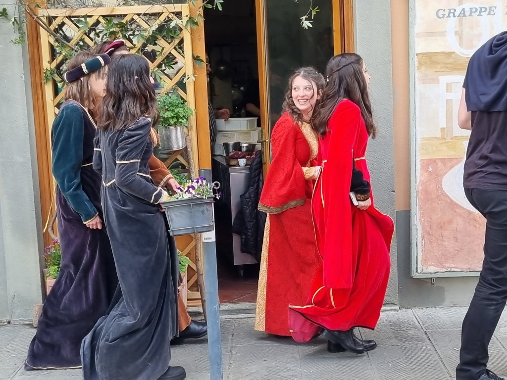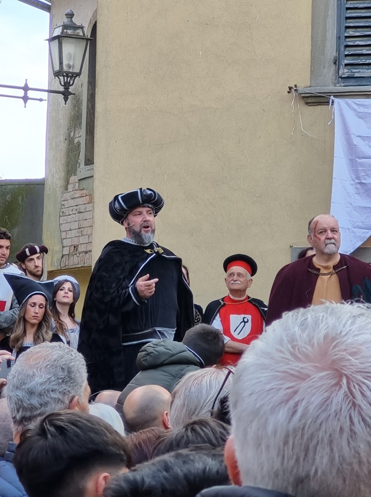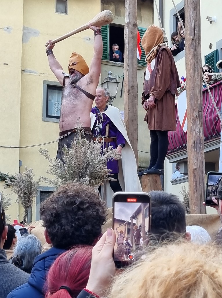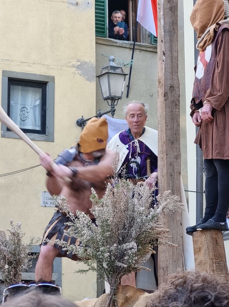 The main event in the late afternoon is the medieval re-enactment of a feud between the Gherardini and the Firidolfi families that involves the whole town as the set, and a huge proportion of the locals as extras, complete with a staged public trial in the town square and culminating with the public hanging of some poor bloke.