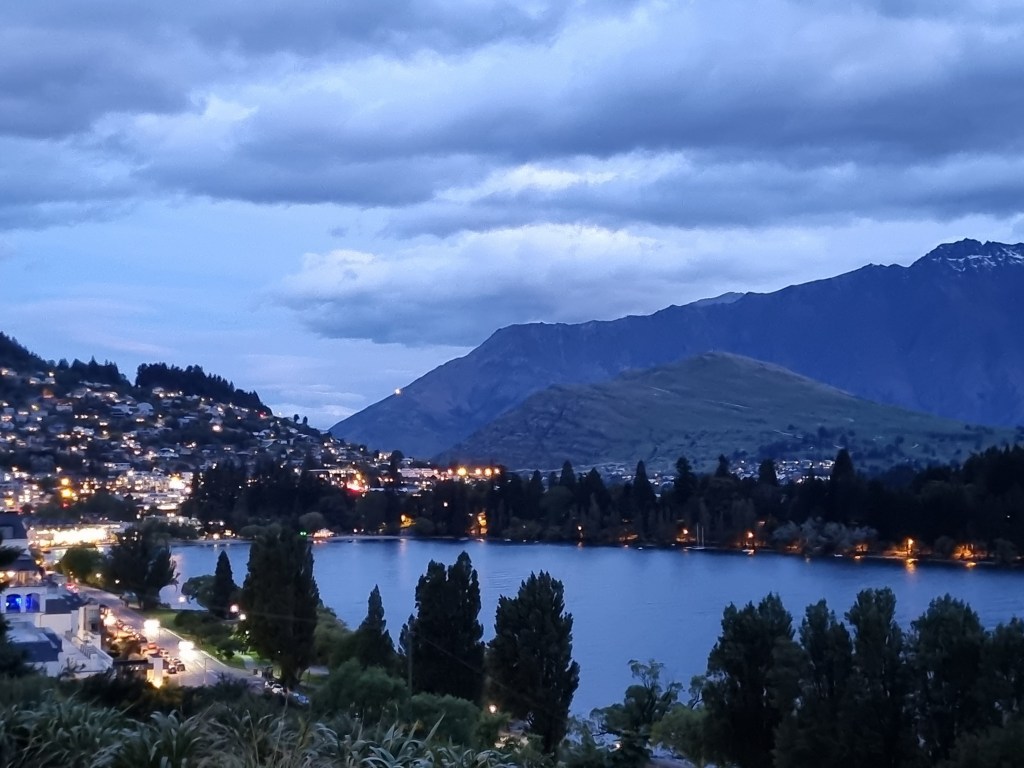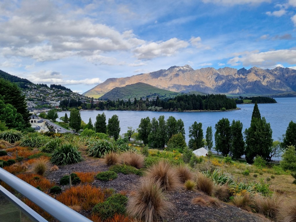 We chose to stay in a serviced apartment at Highview Apartments, a short walk from the town centre – easy on the downhill journey, a little more challenging on the way back up. For this stop we wanted to settle in a little more, self-catering for breakfasts and the occasional lunch or dinner and eating out when we were tempted, so having a kitchen was important. The view from the apartment was glorious, looking down the lake toward town and across to the surrounding mountains. It was the perfect vantage point – a peaceful retreat above the buzz of Queenstown,