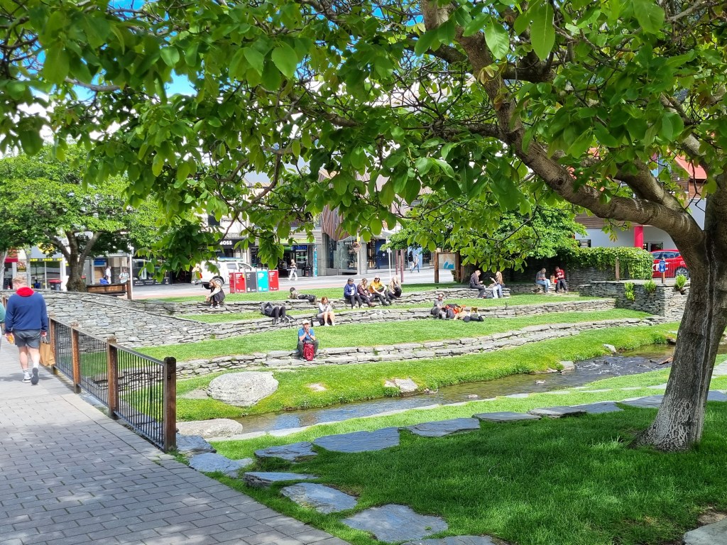 There’s a small creek running through the middle of town – Horne Creek. The area around it was originally part of the natural shoreline and wetlands, but in the late 1800s it was landscaped into formal public gardens as the town grew during the gold rush era. In a town known for high-energy adventure tourism, it’s also one of the few places right in the centre where people simply slow down, relax, and sit in the sun.