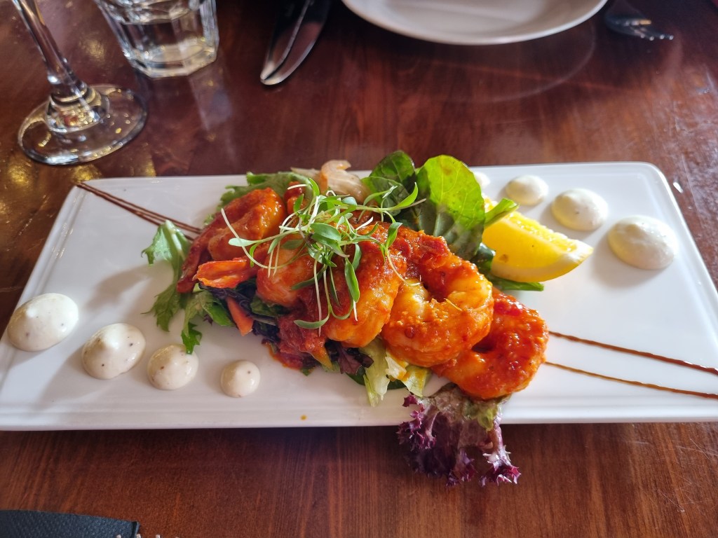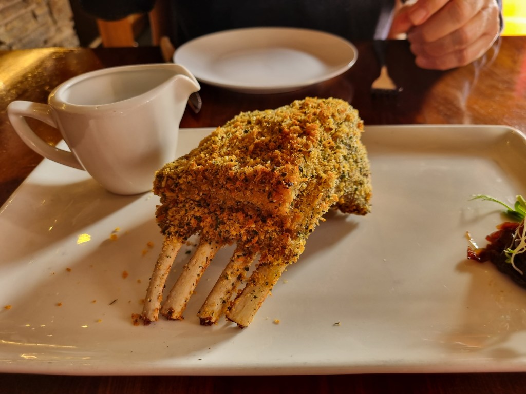 Being sheep country, Jeff couldn’t resist ordering lamb at Captains Restaurant in the Ballarat Street Mall, enticed by their promise of the “best lamb cutlets.” Surprise – it was served all on its own! A few veggies would have been nice. At least the prawn skewer to start set the meal off on a high note.