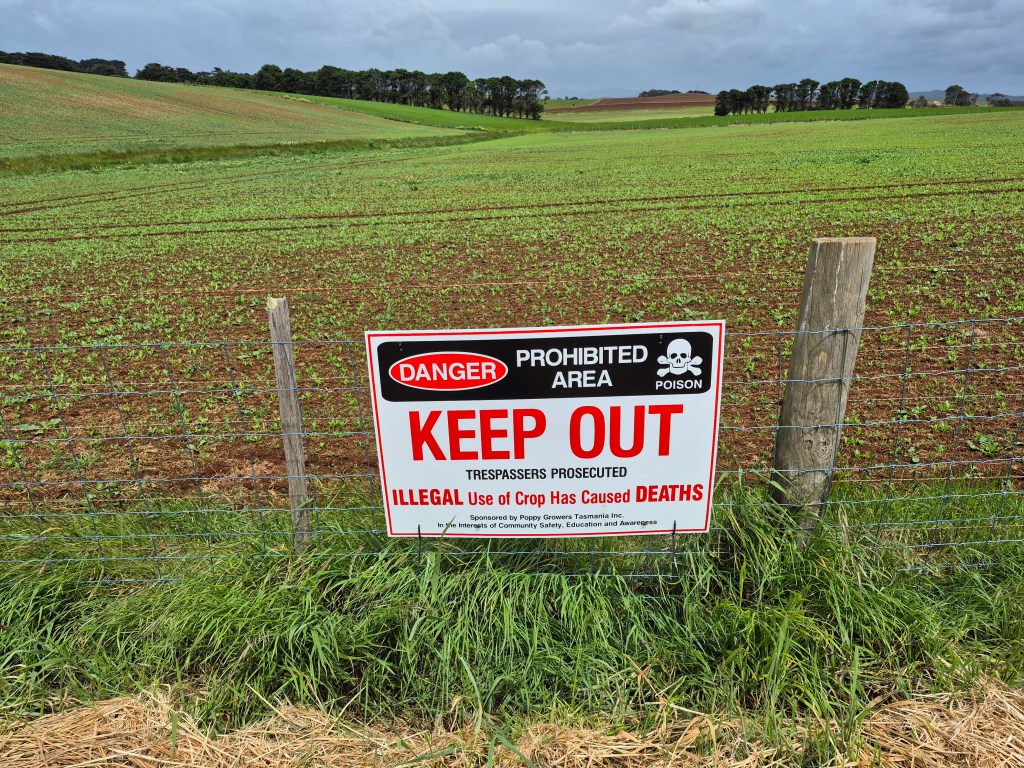 Driving along that section of the north coast, we passed vast poppy fields, well fenced with warning signs. A reminder that these crops are carefully monitored and form part of Tasmania’s tightly regulated pharmaceutical industry.