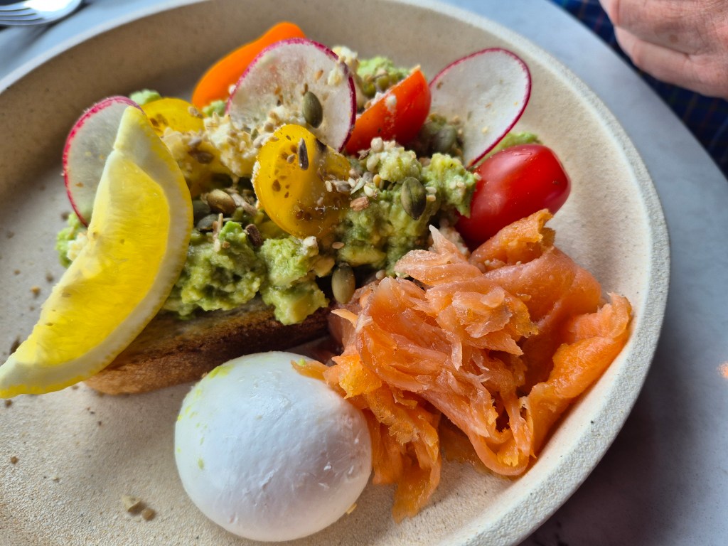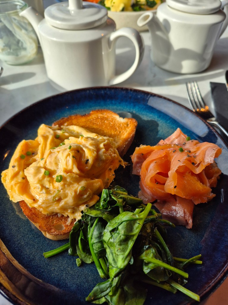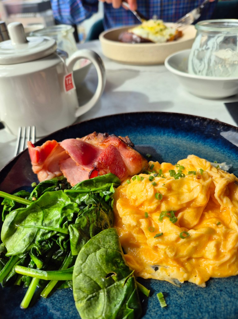Breakfasts are important for our travel time. It sets us up for whatever the day brings and gives us plenty of energy. We always choose a simple, protein-based breakfast. It’s our anchor for the day to keep energy steady.