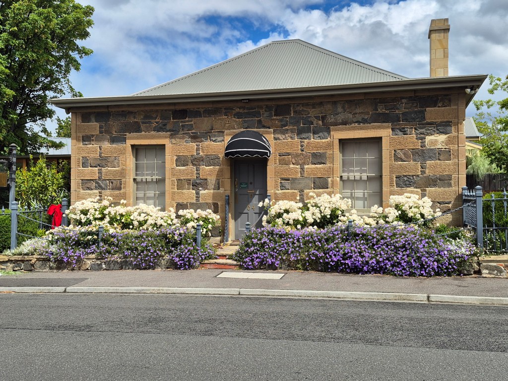 Battery Point is one of Hobart’s oldest and most charming neighbourhoods, dating back to the early 1800s. Its name comes from the small battery of cannons that once defended the harbour, and the streets are lined with beautifully preserved colonial cottages, sandstone walls, and hidden lanes. It’s spring and the perfect time for walking through this suburb with it’s a delightful blend of history, quiet streets and gardens in full bloom.